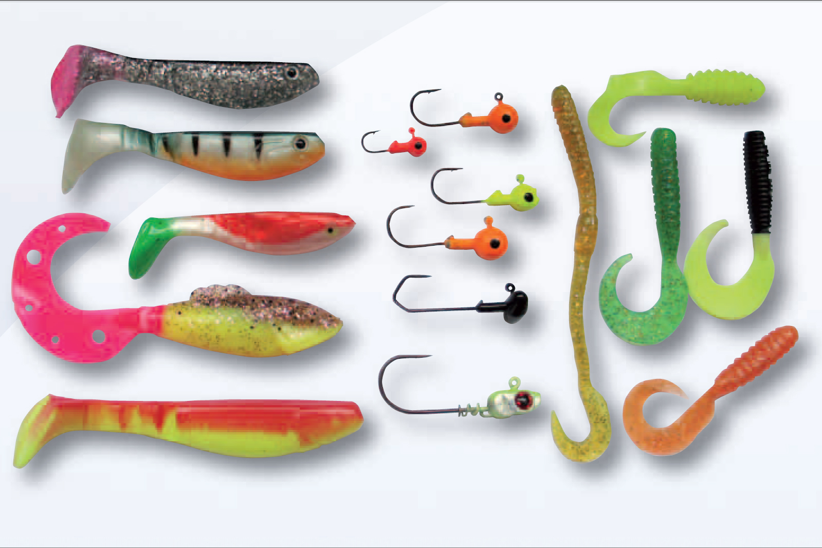 Yleisimmin jigit ovat silikonisia kala- ja toukkajäljitelmiä. Mitä ohuempi pyrstö, sitä herkempi uintiliike. Pikkuahvenille sopiva toukkajäljitelmä on vain muutaman sentin pituinen, mutta suurahvenia kannattaa tavoitella jopa 15 cm pituisilla matojigeillä.
