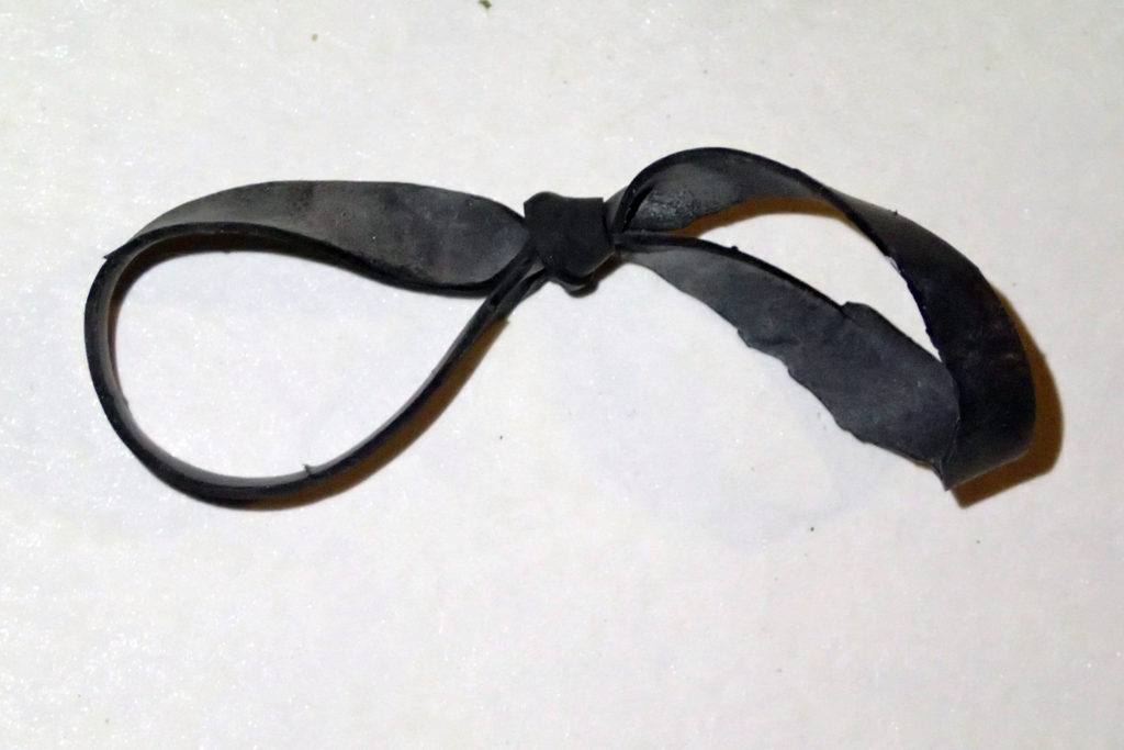 Kuvateksti: Polkupyörän sisuskumista leikatuista kumilenkeistä saat erinomaiset siimanvapauttimet.