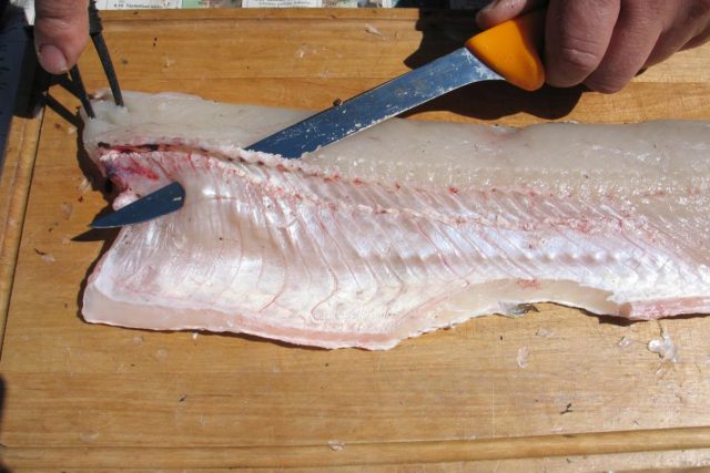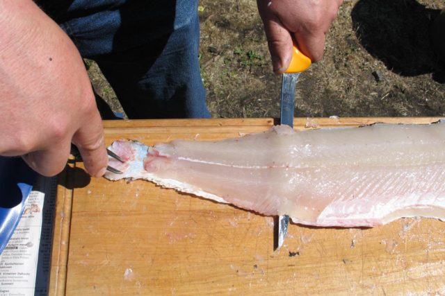 Poista fileistä kylkiruodot kalapiikkiä tai haarukkaa apuna käyttäen. Saat ruodot helpommin irti, kun työnnät veitsen terän ruotorivin alle fileen etupäästä lukien vasta toisen tai kolmannen ruodon takaa. Irrota etupään pari–kolme ruotoa vasta viimeiseksi.