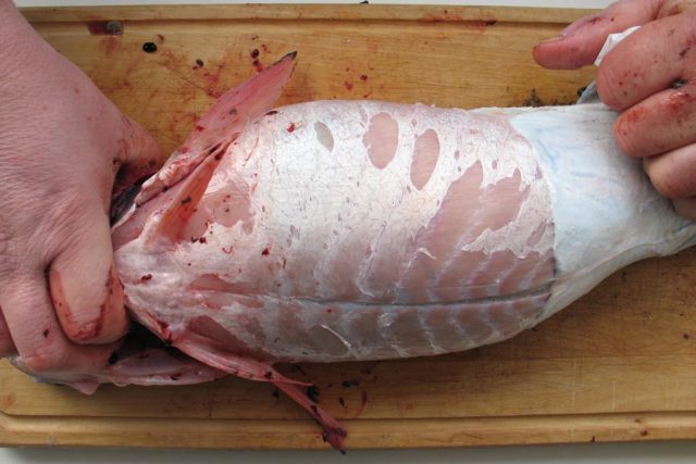 Voit halutessasi irrottaa selkä- ja peräevien lukuisat pienet eväruodot repäisemällä ne irti takaapäin alkaen pitämällä evää esimerkiksi veitsenterän ja peukalon välissä.