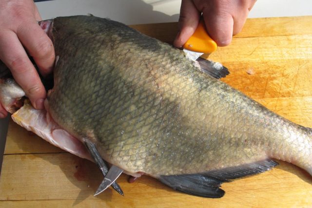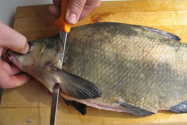 Aloita fileointi pystysuorahkolla viillolla lahnan pään taakse selkäruotoon saakka.