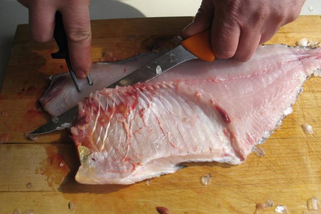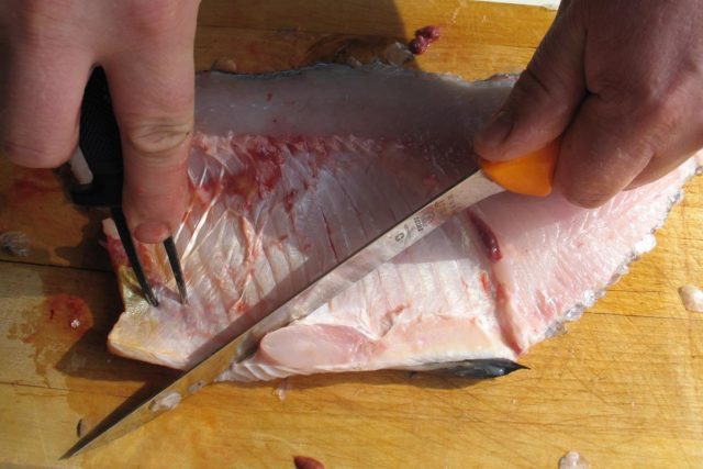 Poista fileistä kylkiruodot kalapiikkiä tai haarukkaa apuna käyttäen.