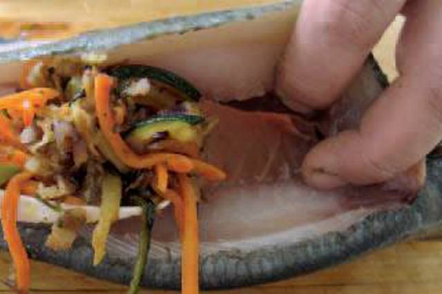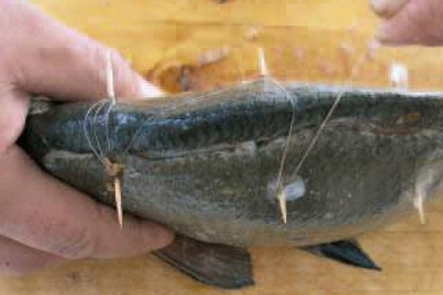 45–55 minuuttia). Kala on valmis, kun sen rintaevä irtoaa