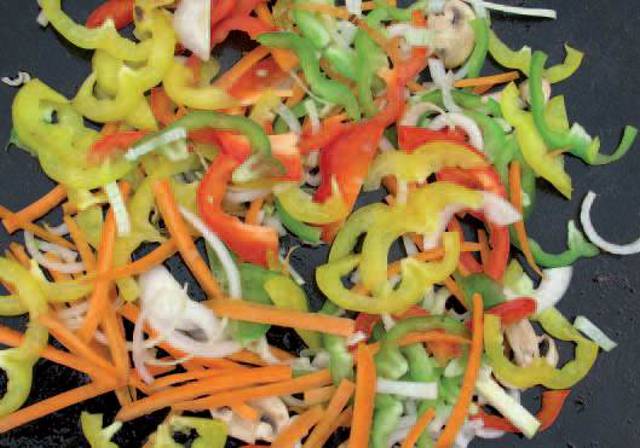 Paloittele sillä aikaa sienet, paprikat, kesäkurpitsa ja