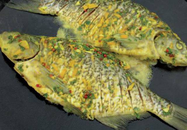 Tee peratun ja suomustetun lahnan kylkiin parin sentin